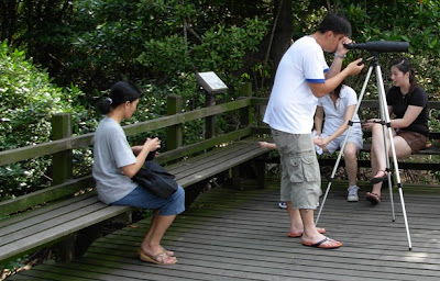 When I was at platform 1, some enthusiasts were observing something through their spotting telescope. They were using what looks like a 50mm instrument, which is adequate for birding purposes.