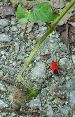 Or this beetle that strayed into the gravel footpath and scurried away towards safety. It had such a bright red colour that it looked like a plastic toy.
